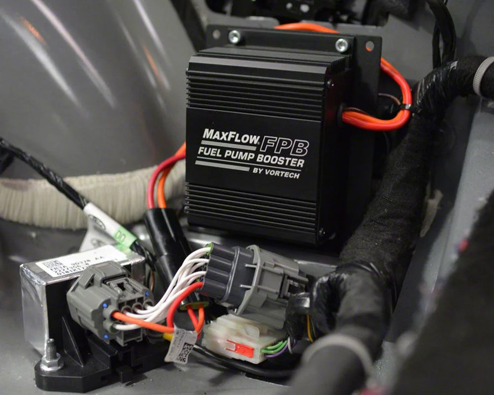 Premium Functional Design. The Vortech Maxflow Fuel Pump Booster is an advanced fuel system upgrade that maximizes the output of your street or racing fuel pump. With its microcontroller design and SMD layout, this booster offers precise control and efficient performance. It increases the fuel pump output by up to 50%, ensuring a steady and reliable fuel supply even under high-demand conditions. The booster provides a stable voltage to the fuel pump, optimizing its performance and preventing voltage drop. Engineered with multi-phase circuitry, it delivers consistent power and minimizes electrical interference for improved fuel system operation.