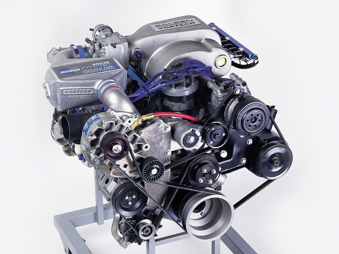 Ensures Cooler, Denser Air. The Vortech V3 Si-Trim Supercharger with Charge Cooler will provide your 5.0L Foxbody Mustang's engine with cooler, denser air due to the air/water charge cooler system. The supercharger, which is sold as an individual kit, also includes a lubrication system for your car's engine oil.