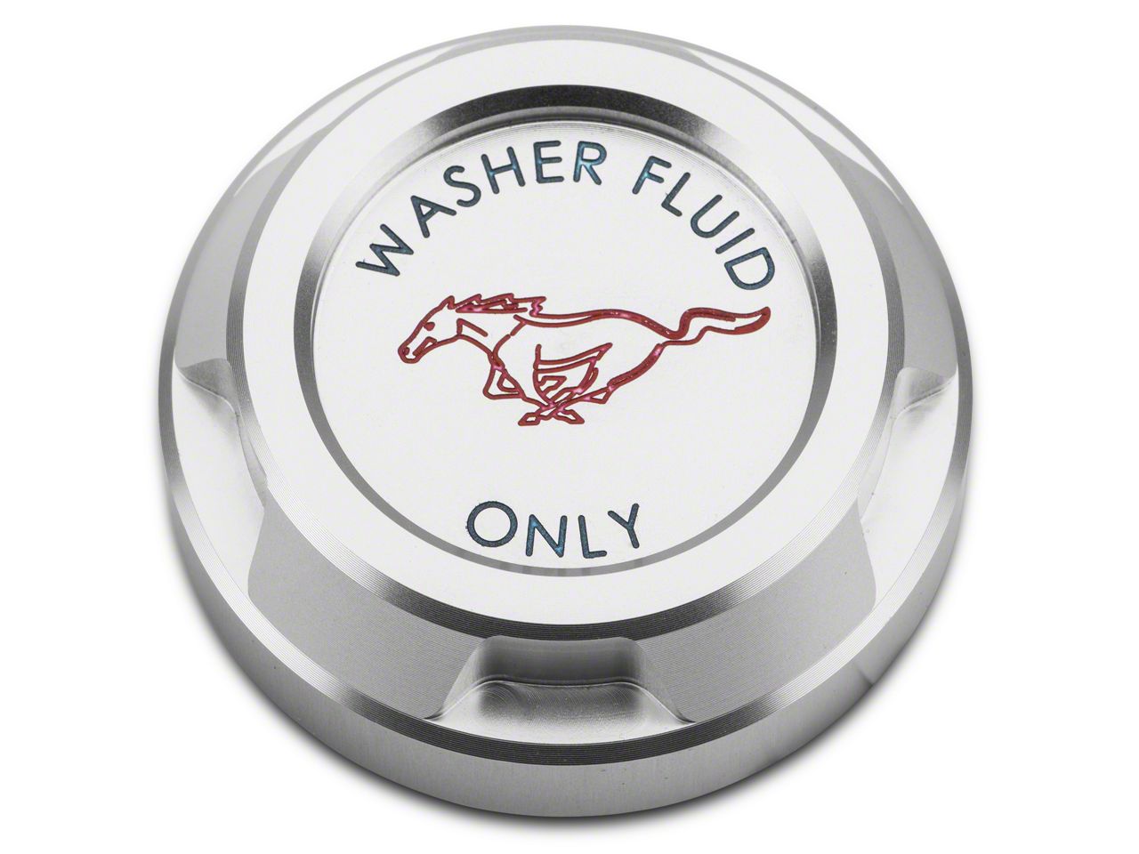 Upgraded Styling. You don't have to settle for the same old factory cap under your Mustang's hood. Give your engine bay a makeover with a Scott Drake Billet Aluminum Washer Reservoir Cap instead. As a direct replacement for the factory cap on your windshield washer fluid reservoir, this upgrade installs easily in moments for a unique look. Officially licensed, it features a red running pony logo and a reminder reading "Washer Fluid Only" in black text. If you're looking for a complete under hood make over, this cap can be installed alongside an array of aluminum dress up options for a show worthy appearance each time you open the hood!