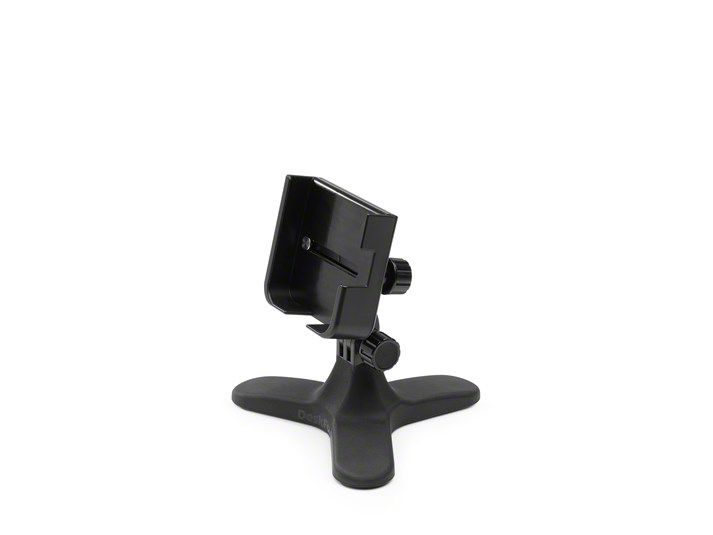 Description. The DeskFone Two View phone holder was created for users that would like to have the option to view their phone in the holder in either portrait or landscape mode. The DeskFone Two View phone holder fits phones that measure 2?” wide when standing vertically, and stretches all the way out to 6¾” to accommodate the horizontal viewing angle.