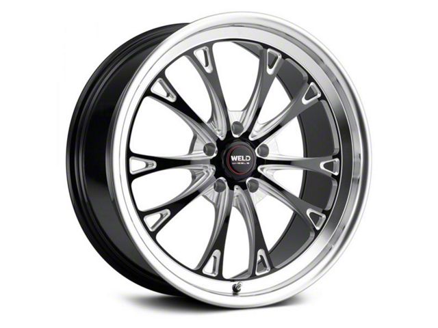 The 20x5 WELD Performance Belmont Drag Gloss Black Milled Wheel; Front Only; 20x5 is completed in a high quality, gloss black finish. The milled steel accents are where it really shines through. The accents make the split section of the spokes pop along the faux beadlock.