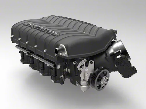 Complete Kit. This Whipple Supercharger Kit includes the Gen 5 W185RF 3.0L twin-screw supercharger unit, aluminum high-flow intake manifold, oversized air-to-water intercooler, high flow intercooler pump, billet fuel rails, high flow fuel injectors, colder spark plugs, air filter, pulley, hoses, and wiring harnesses. An OBDII flash programmer with Whipple calibration is also included for easier tuning.
