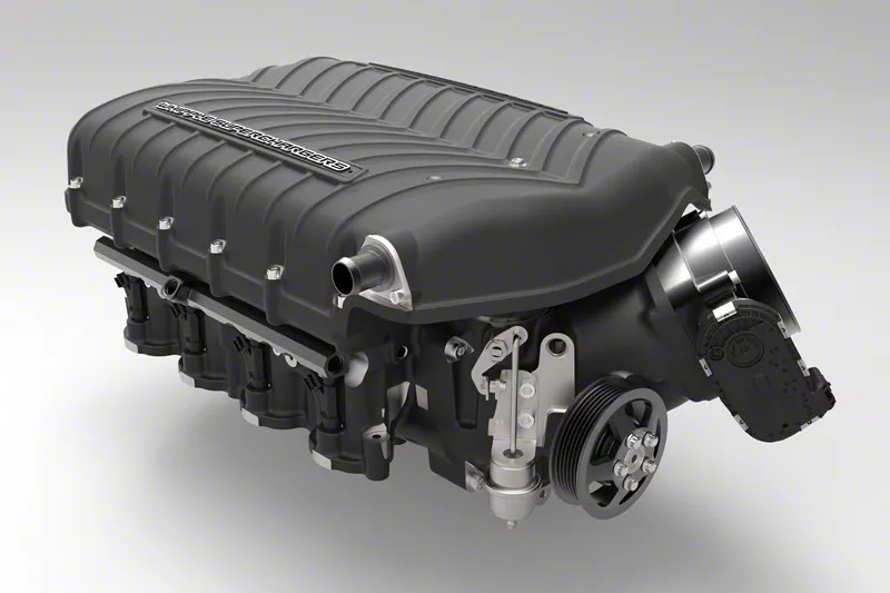 Complete Kit. This Whipple Supercharger Kit comes complete and includes the Gen 5 W185RF 3.0L twin-screw supercharger unit, aluminum high-flow intake manifold, oversized air-to-water intercooler, high-flow 58 lb-hr Bosch dual pattern fuel injectors, MSD plug and play fuel pump booster, air filter, pulley, hoses, and wiring harnesses. A OBDII flash programmer with Whipple calibration is also included for easier tuning.