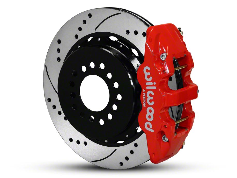 Innovative Quality. Are you looking for a big brake solution for your Mustang’s rear axle? Then look no further than the Wilwood AERO4 Rear Brake Kit w/ Drilled & Slotted Rotors – Red. This rear brake kit gives you super holding power for all your parking positions.