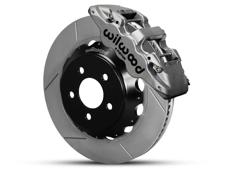 Significantly Shortens Stopping Distances. Love to race with your Ford Mustang, but you want to ensure that it comes to a complete stop as quickly as possible? You can do that with the Wilwood AERO6 Front Brake Kit w/ 15 in. Slotted Rotors – Nickel. This kit includes directional staggered-vane 15-inch slotted rotors, which are optimized for shortening stopping distances.