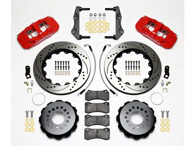 Drilled and Slotted Rotors. This Red Wilwood AERO4 Rear Brake Kit comes with drilled and slotted rotors for optimum ventilation. Without these holed surfaces to your rotors, they become more prone to cracking and warping due to your under hood’s excessive heat.