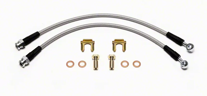 Stainless Steel Hose. This rear Wilwood Flexline Brake Line Kit promises a hard-line feel performance, ensuring precise braking responsiveness. Each line boasts a braided stainless steel outer brake hose construction, renowned for its durability and resilience.