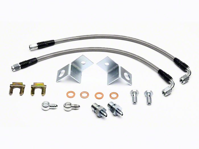 Direct Fitment. The hoses in this Rear Brake Line Kit have an OE fit so that they not only bolt on directly in place of the rubber hoses that came with your Mustang but also perform optimally. All required hardware comes with the kit, which is best installed by a professional mechanic or service provider at the same time as the corresponding rear disc brake kit.