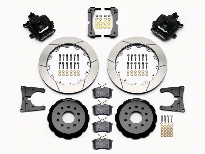 Upgrade Your Brakes. Add performance to your Mustang's braking system with this Wilwood CPB Rear Brake Kit w/ Slotted Rotors – Black. This brake kit keeps the parking brake you have gotten to love, especially if you have a manual transmission. The parking brake now uses an internal caliper design instead of brake shoes in between the rotor. This kit adds serious braking performance and longevity to your rear brakes.
