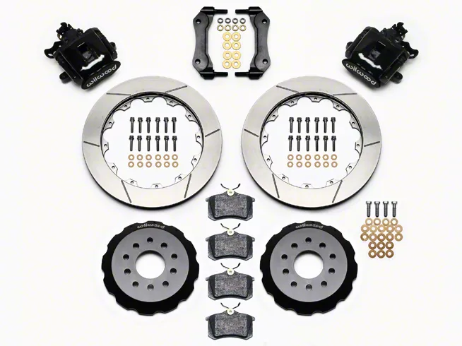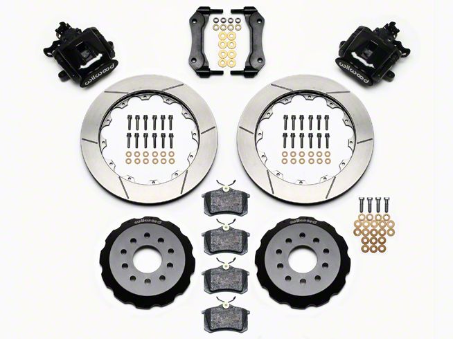 Add Stopping Power. Upgrade your Mustang's rear brake kit with this Wilwood CPB Rear Brake Kit w/ Slotted Rotors – Black. This kit improves your braking performance and pedal feel while keeping the convenience of a parking brake within your Mustang. Rear brakes are an integral part of your vehicles braking system, especially when on the track or during spirited driving. They help to load up the rear for better turn out from the apexes.