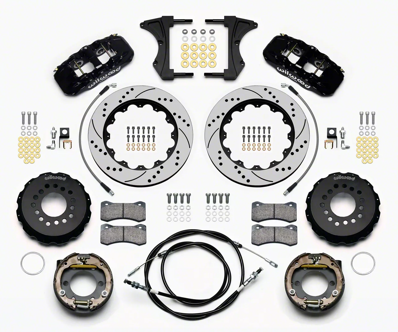 Application. This Wilwood AERO4 Rear Big Brake Kit with Drilled and Slotted Rotors is designed for use on the 2005–2014 Ford Mustang models equipped with a BMR suspension.