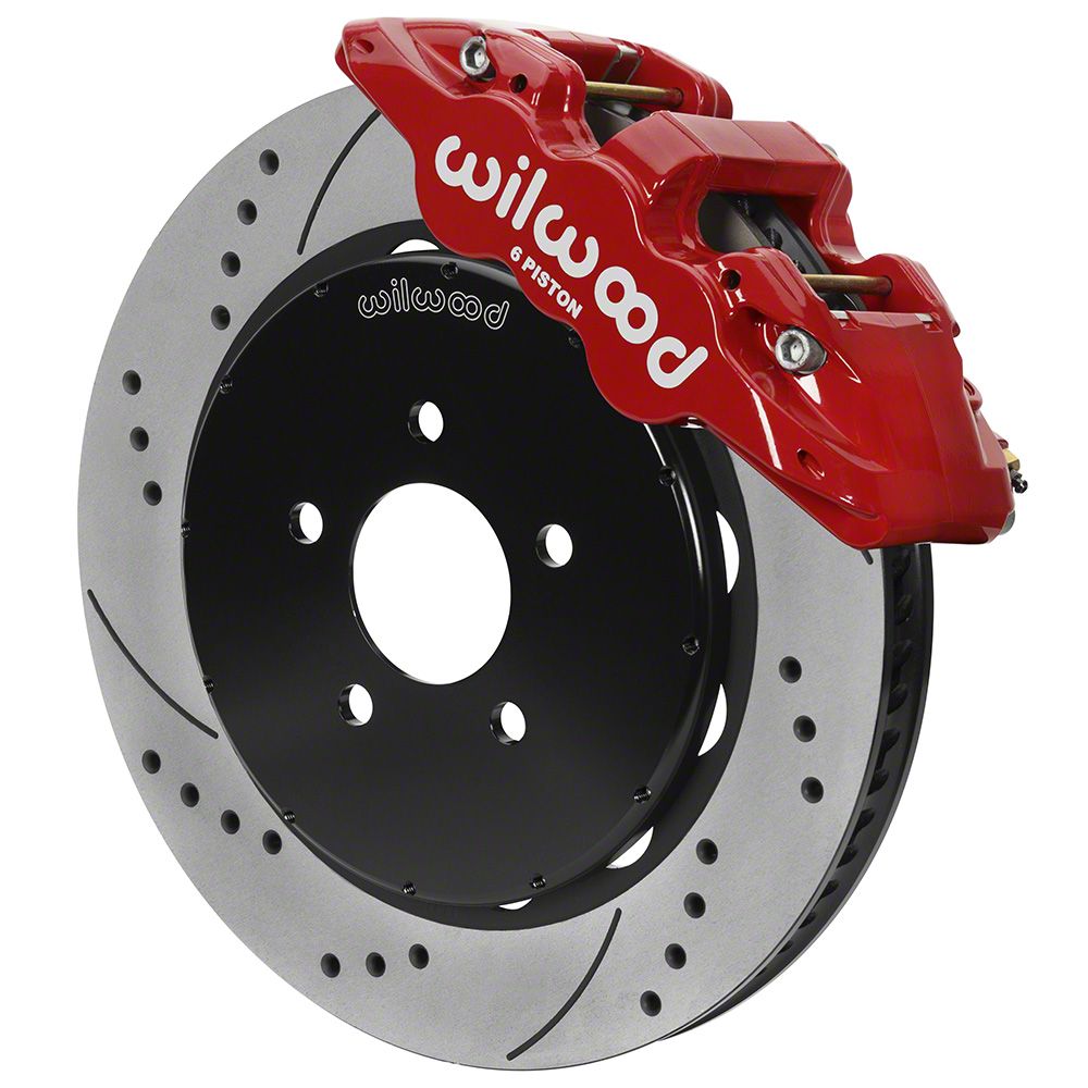Unmatched Stopping Power and Style. The Wilwood AERO6 Front Big Brake Kit is engineered for Mustang enthusiasts who demand superior braking performance and aesthetics. This kit includes 14-inch drilled and slotted rotors that not only enhance cooling and brake response but also provide excellent performance under high-stress conditions, making it ideal for both street and track use. The red 6-piston calipers deliver exceptional stopping power, while the durable powder-coated finish adds a touch of aggressive style to your Mustang's appearance.