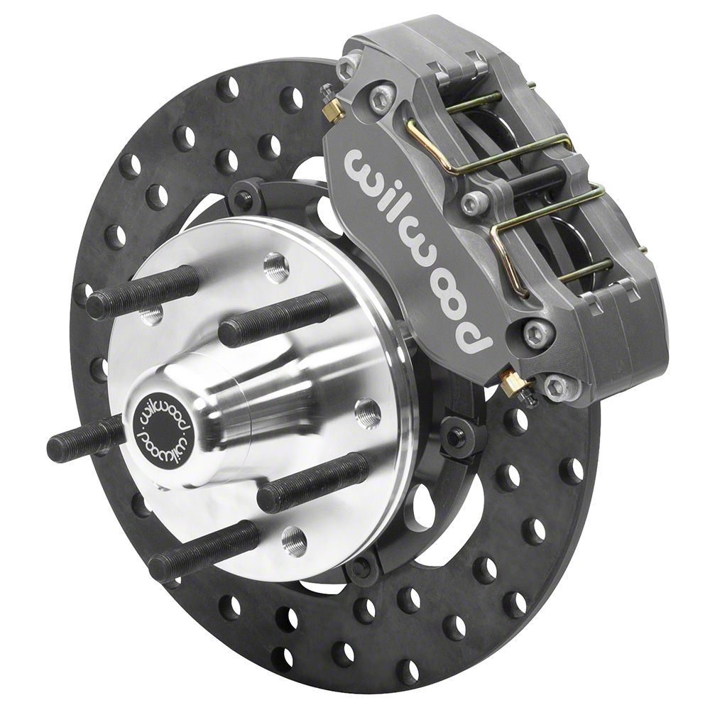 Superior Stopping Power. The Wilwood DynaPro Lug Mount Dynamic Drag Big Brake Kit is engineered to deliver unmatched stopping power and reliability for Mustang models undergoing a 5-lug conversion. Featuring anodized gray finish forged billet DPL 4 piston calipers and drilled matte black finish rotors, this kit is designed for vehicles weighing up to 2,800 pounds with 4 wheel disc brakes or up to 2,400 pounds with rear drum brakes. Its minimum wheel size requirement of 15 inches allows for compatibility with a wide range of aftermarket wheels, ensuring that performance does not compromise style. The inclusion of all necessary installation hardware, wheel bearings, seals, and extra length lug studs facilitates a seamless upgrade process, enhancing both the form and function of your Mustang.