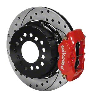 Durable Functional Design. The Wilwood Forged Dynalite Pro Series Rear Big Brake Kit includes drilled and slotted rotors and striking red calipers, not only enhancing your vehicle's stopping power but also adding a bold visual statement. Crafted from a combination of high-grade aluminum and cast iron, these components are designed for optimal durability and heat dissipation. Their corrosion-resistant coating ensures long-lasting performance and appearance, even in challenging weather conditions. With a heat-resistant design, this brake kit provides consistent and reliable braking performance, making it a must-have for anyone seeking improved stopping power and style for their vehicle.