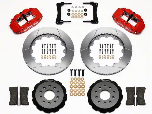 Shortens Stopping Distances. Although primed for top speed with its beefy engine, the Ford Mustang also needs to be able to curb its sheer power with its four-wheel disc brake system. You can take the extra step to upgrade it in the front with the Wilwood Superlite 6R Front Brake Kit w/ 14 in. Slotted Rotors - Red. Consisting of large 14-inch curved-vane GT-slotted rotors and six-piston calipers, this disc kit is designed to shorten the distance between applying your brake pedal and coming to a complete stop.