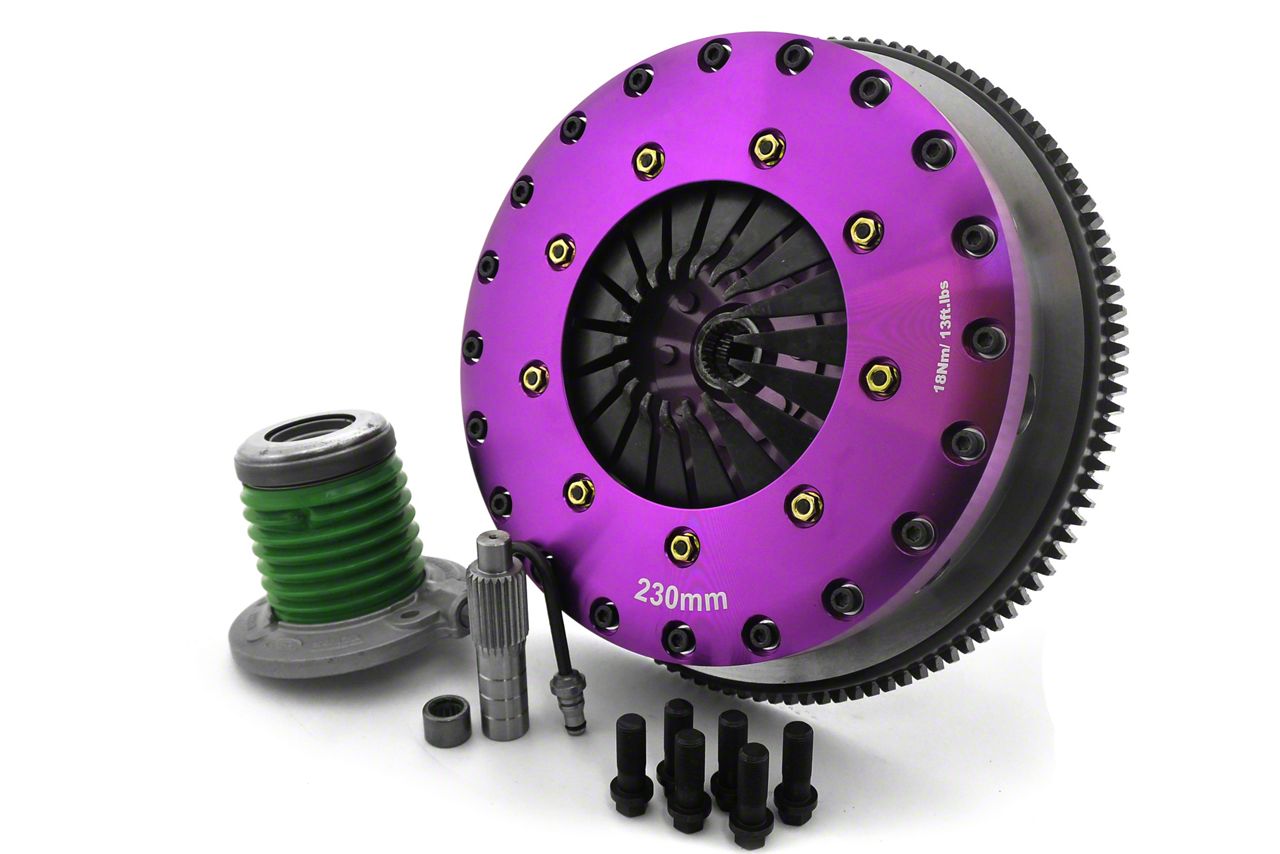 Increases the Vehicle’s Torque Capacity. The X-Clutch Race Ceramic Twin Disc Clutch Kit is engineered to withstand up to 1,350-pound-foot of torque, which is higher than what your vehicle’s stock clutch can handle. As a result, it makes a great addition to your Mustang’s high-performance build.