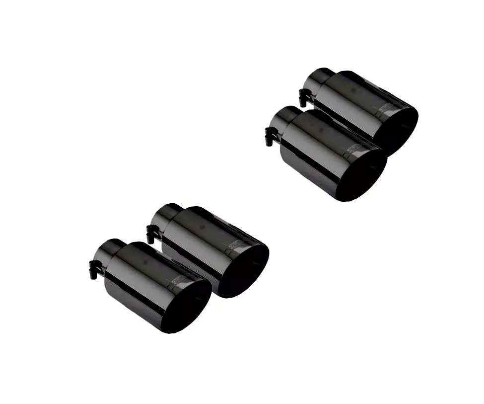 Complements Your Exhaust System. Adding these XForce Twin 4-Inch Quad Exhaust Tips will complete the look of your Mustang's exhaust system. Featuring a 4-inch outlet size and a black finish, these exhaust tips lend a more powerful personality to your Mustang. Furthermore, the tips feature a round, angle-cut, and double-wall build for a more impressive style and durability.