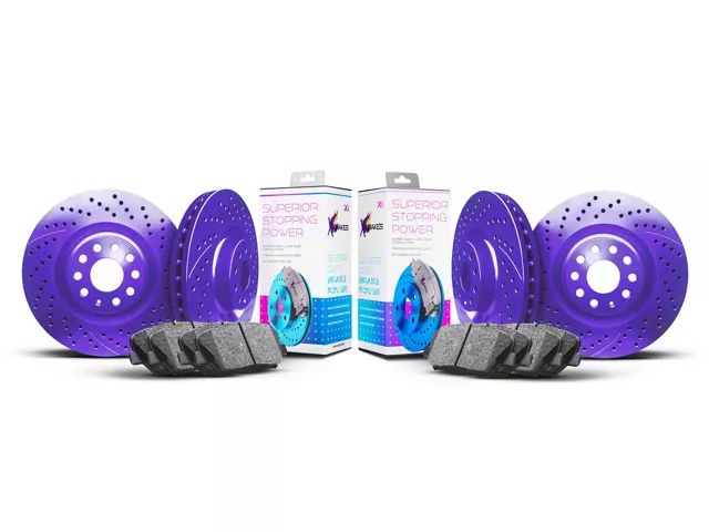 High-Performance Braking Package. The Xbrakes Xi Series Brake Rotor and Pad Kit delivers advanced braking performance for demanding driving conditions. Engineered for both the front and rear, this kit features drilled and slotted rotors paired with Kevlar ceramic pads for superior heat dissipation, consistent stopping power, and reduced fade. Specifically built to fit 2015-2020 Dodge Challenger SRT Hellcat models and 2015-2023 6.4L HEMI Dodge Challenger models with 6-piston front calipers, it is the ultimate upgrade for enthusiasts who demand maximum performance.