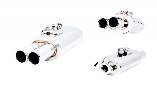 Durable Stainless Steel Muffler System. Transform your vehicle's exhaust system with the cutting-edge XForce Varex Valved Center/Twin-Out Oval Muffler, featuring 3-inch tips and a 2.50-inch inlet for universal application. This advanced muffler incorporates Varex technology, allowing you to adjust the exhaust sound level for a custom driving experience.