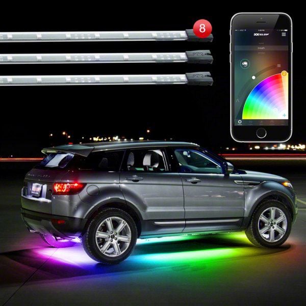 App Controllable. The XK Glow Underbody LED Accent Light Kit is designed with 16-bit gamma correction, ensuring smooth color transitions and vibrant lighting effects. You can also control the lights using the smartphone app, giving you convenient control right at your fingertips. Integrated with an LED light source type, this kit delivers bright and energy-efficient illumination.