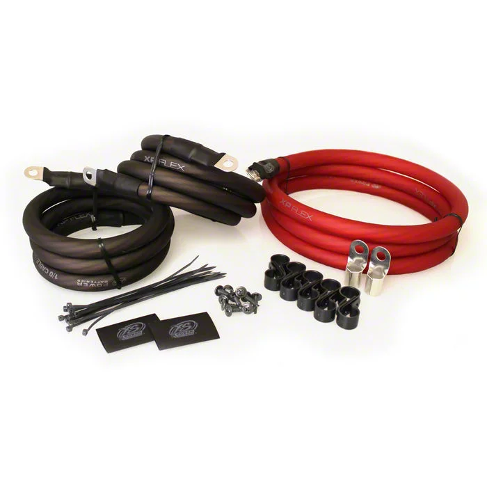 _x000D__x000D_Construction and Appearance. The kit is made with 1/0 AWG XP FLEX cables, featuring flexible high-strand copper conductors and durable insulation for long-lasting performance. The cables come in red and black finishes for easy polarity identification and include XS Power heat shrink and quality crimp terminals for secure, reliable connections.