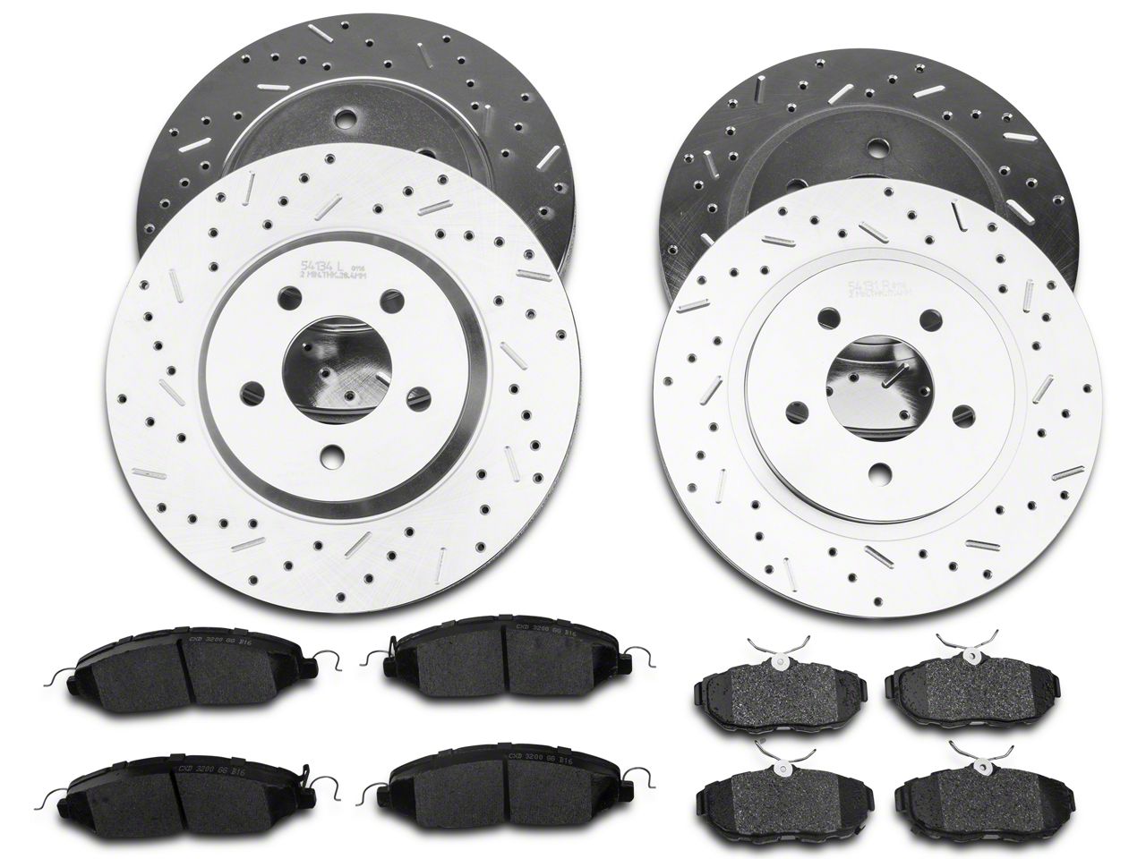 Brake More Effectively. Having precise control over your Mustang's braking system is essential for safe driving. This Xtreme Stop Precision Cross-Drilled & Slotted Rotor and Ceramic Brake Pad Combo Kit will provide you with the stopping power you need to stay safe on the street, strip, or track. This Xtreme Stop Combo Kit will provide 15% more braking power in comparison to your Mustang's original factory set up and is ideal for those who want high-quality braking power that won't break the bank.